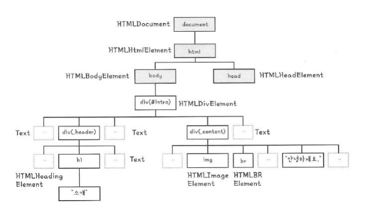 -HTMLDocument 객체에는 HTML 페이지 로딩후 파싱 단계에서 만들어진 html, head, body 객체를 비롯해 페이지에서 작성된 태그와 일대일로 매칭되는 모든 Node 객체를 가지고 있는 객체