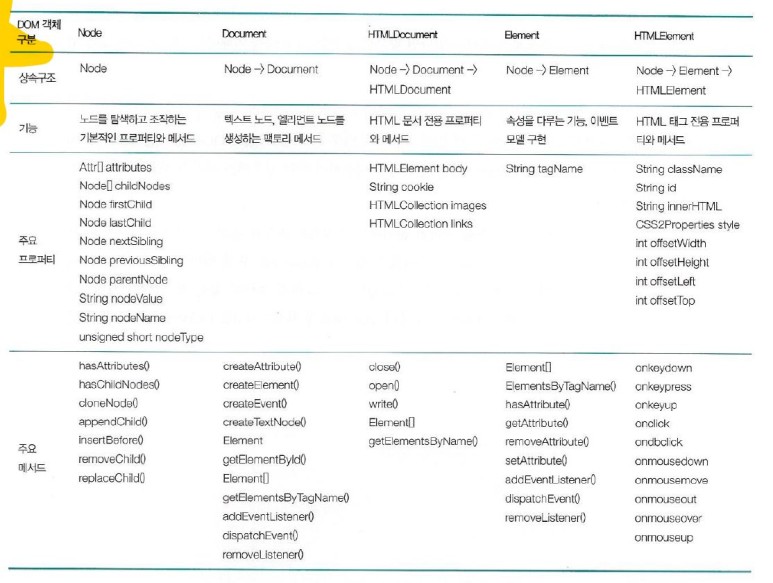 -Node객체 : 노드를 조작하기 위한 가장 기본적인 프로퍼티와 메서드가 정의돼 있는 Node 인터페이스를 구현한 객체